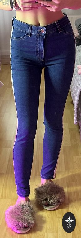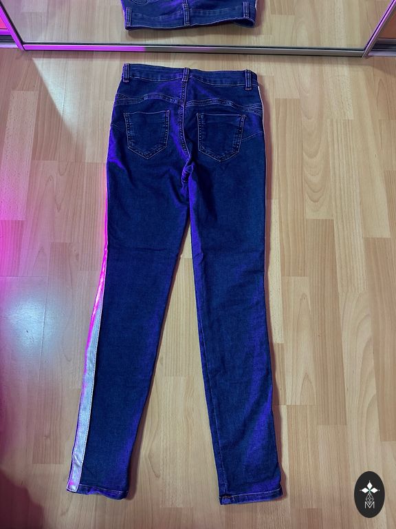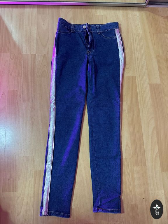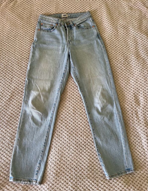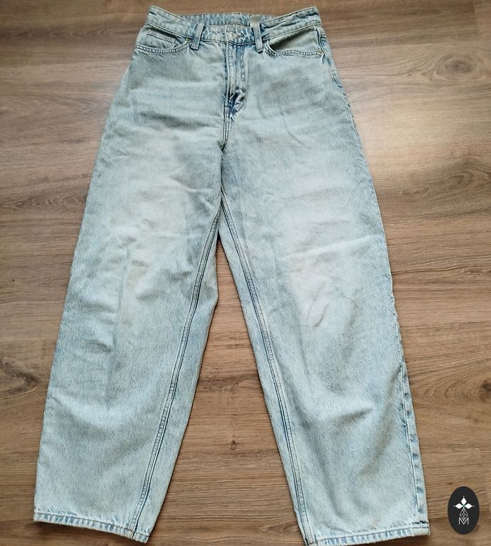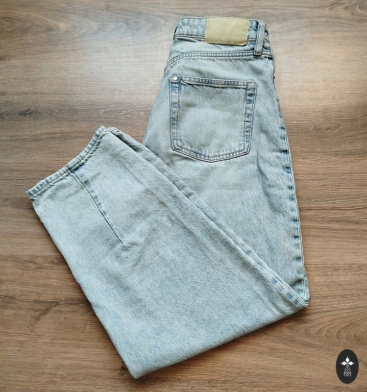 Size 36, dull blue. Waist width 36cm, inseam length 78cm. Worn 2 times and washed Dpd+ 2.