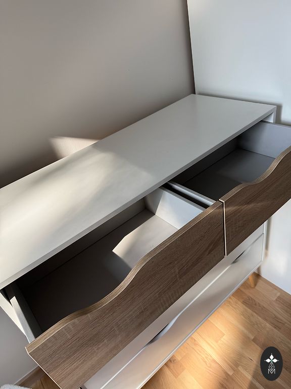 Balta Malm komoda su 3 stalčiais iš Ikea. Plotis - 80 cm Gylis - 48 cm Aukštis - 78 cm