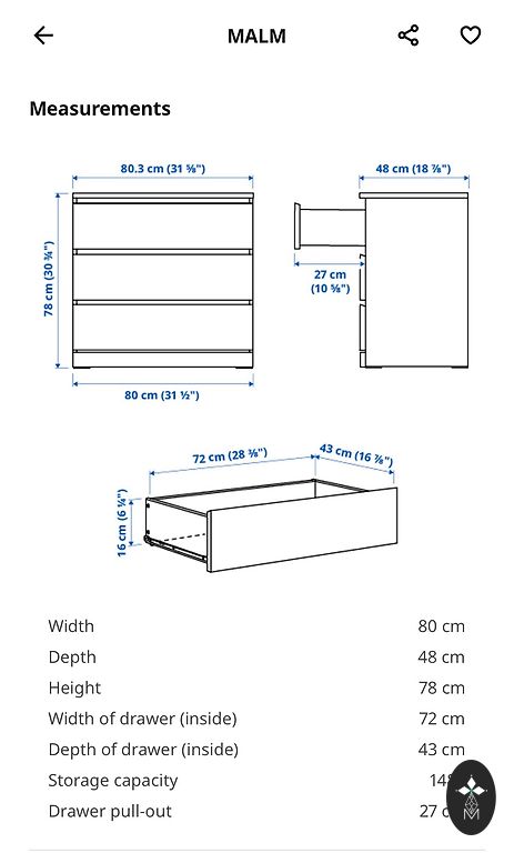 Ikea Kumodes specifika: https://www.ikea.com/lv/lv/p/malm-kumode-ar-4-atvilktnem-melni-bruna-krasa-30403566/