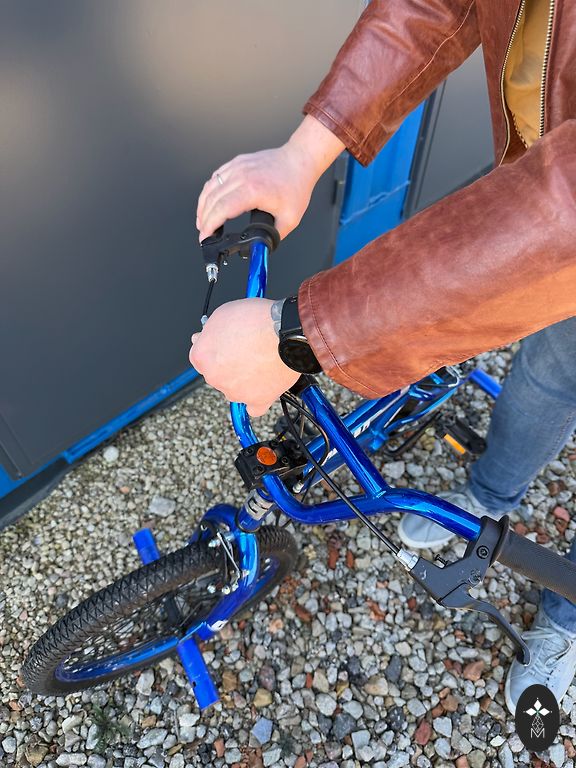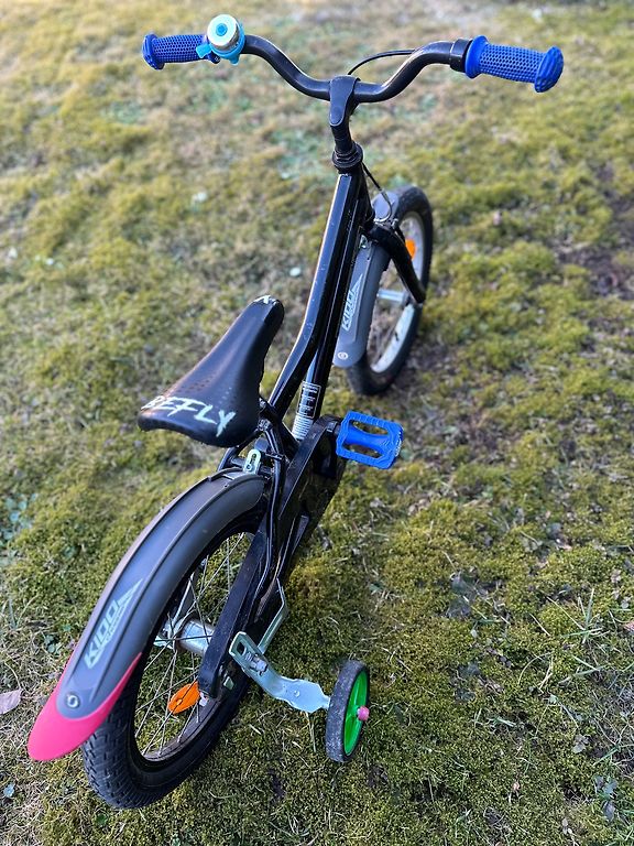 Куплен новый 7 лет назад. Из-за стояния на улице заржавел звонок. Немного порвано сиденье (видно на фото). Функционирует отлично. Вес 4,6 кг. Получение лично - в Елгаве.