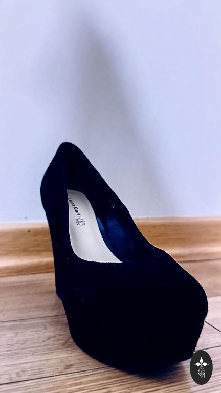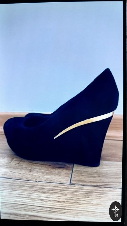 Idealios būklės, galima sakyti kaip naujos, geriau siaurai kojai. Itališka kokybė, viskas labai patikimai ir tvarkingai padaryta. Teksto vertimas iš ekrano nuotraukos: Platforminės basutės iš tekstilės su dirželiu ant kulkšnies, priekyje puoštos kristalais ir akmenimis. Guminis padas. Pado ir kulno dydžiai: kulno aukštis — 85 mm (8,5 cm) platformos aukštis — 60 mm (6 cm) nuolydis (skirtumas tarp kulno ir platformos) — 25 mm (2,5 cm)