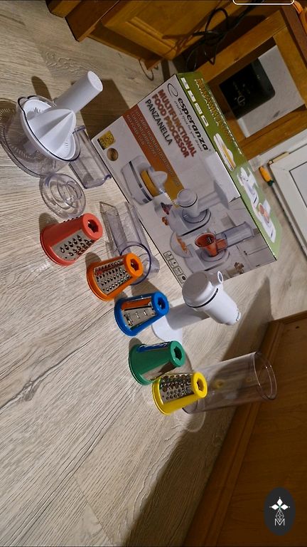 Komplektācijā šai sērijai parasti ietilpst nerūsējošā tērauda nazis, mīklas instruments, metāla putotājs, griešanas/rīvēšanas diski, un atsevišķām komplektācijām arī citrusaugļu spiede.