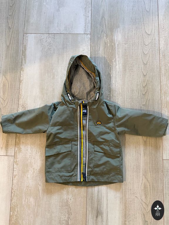 Jauna , divpusēja starpsezonas virsjaka . Viena puse dzeltena , otra tumši zila. Izmērs 74/80.