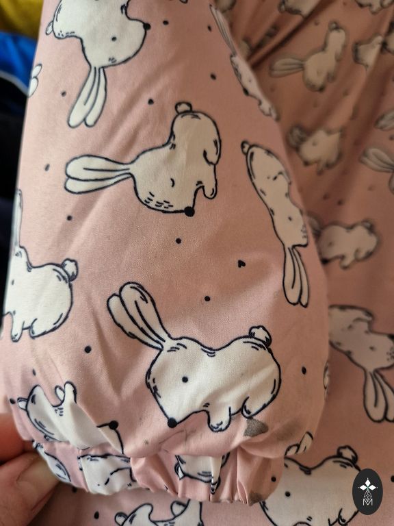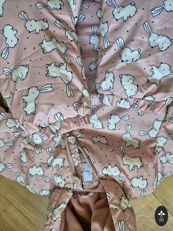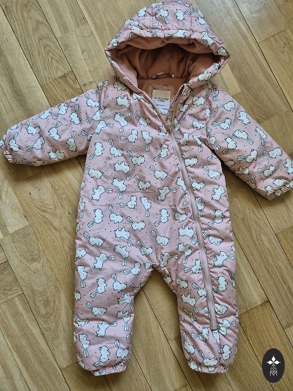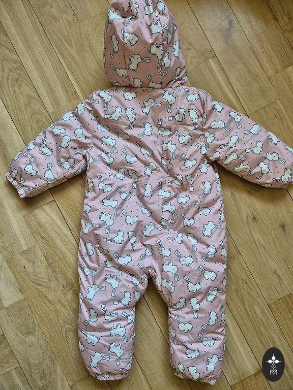 Vähekasutatud vankrikombinesoon pehmest, kohevast kangast kapuutsiga.