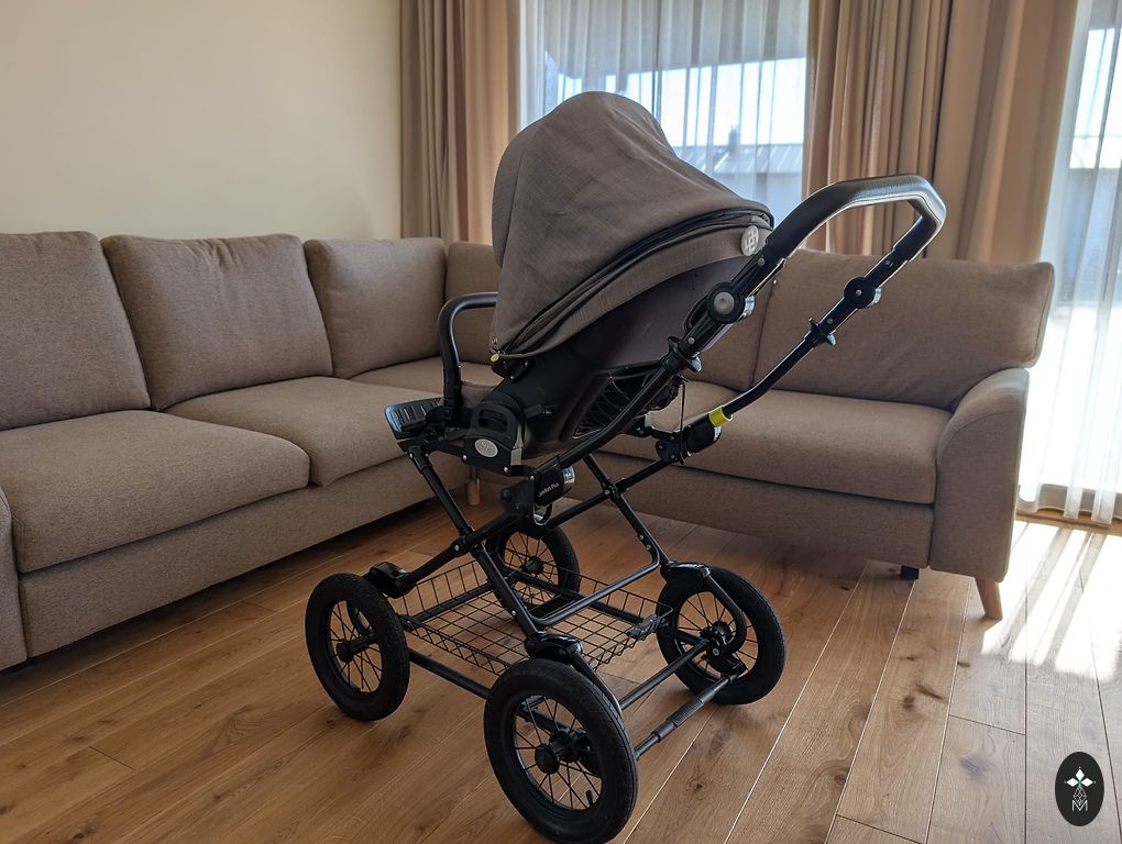 * Käruraamile saab kinnitada nii hälli, istumisosa kui ka turvatooli (vaatega mõlemale poole).