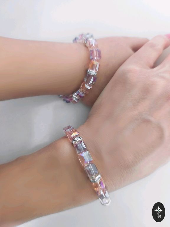 Meie koos tütrega valmistame ilusaid, maitsekalt sädelevaid pastellvärvides ehteid tellimisel. Müügil on roosa pärlitega ja kristallidega ning läikiva hõbedase kristallkuuliga käevõru õhukesel, nähtamatul elastsel traadil. Käevõrud näevad välja maitsekad ja väga läikivad. Hind on märgitud ühe käevõru kohta, sõltumata käe suurusest (kohandame vajaliku käe suurusega). On võimalik tellida ka 2 ühesugust (ema-tütre) käevõru, nagu teisel pildil. Hind kahe eest on 8 eur.