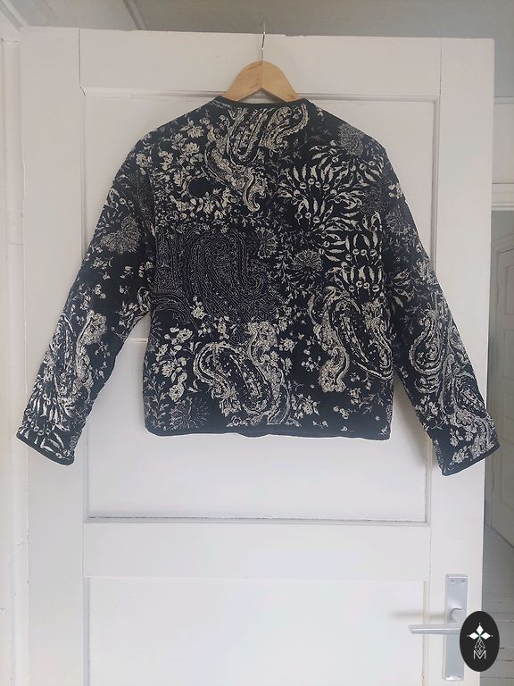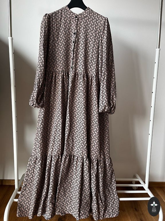 Pikk kleit seljas, suurus märgitud S. Kandsin ka XS, kangas veniv sobib ka S-le, vasakul pool väike lõhik.
