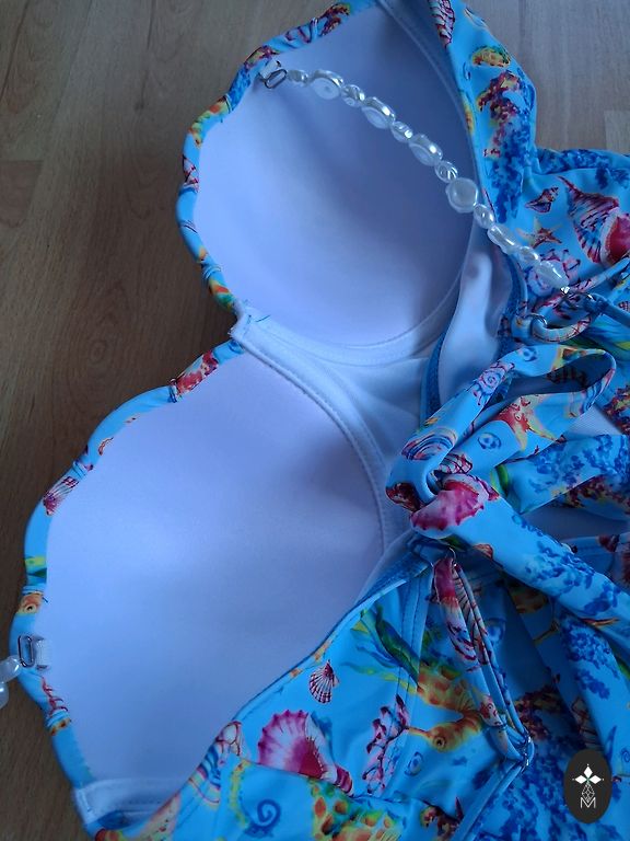 • Viršutinė dalis (liemenėlė): Apskritimas 64 cm, išsitempia iki 90 cm. Reguliuojamos petnešos.