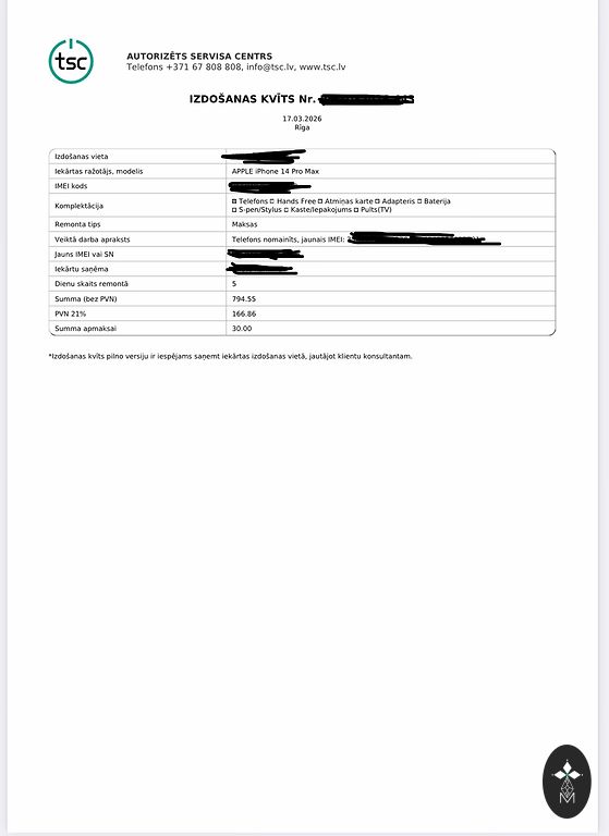 | Technikos tipas | Mob. telefonai IOS |