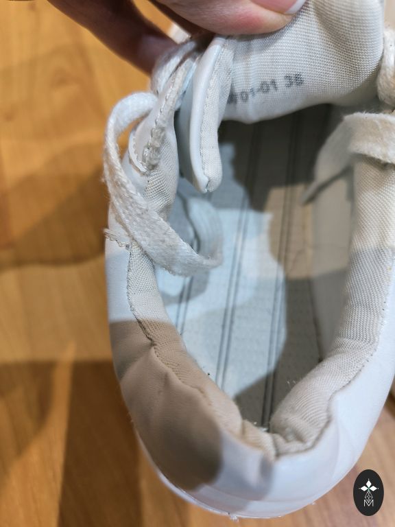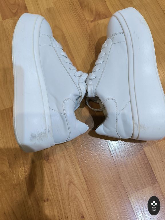 Batai labai patogūs, gražūs, tačiau yra defektų. Nuotraukose matyti, šoninis plyšimas medžiagos lenkimo vietoje. Netrukdo dėvėti, tinka patogiai avalynei pavasario darbams ir nedarbams :) Kulno elementas taip pat su įbrėžimais, nuotraukose matyti. Kitaip batai yra gražūs ir švarūs.