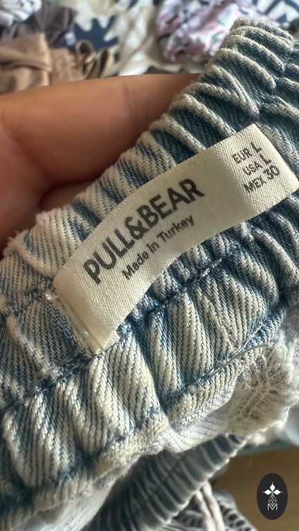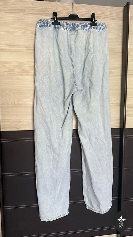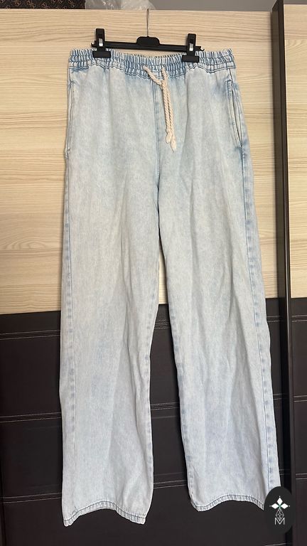 Deja, tapo per didelis. Graži šviesiai mėlyna džinsinio audinio spalva. Bananų formos džinsai. Dydis M. Liemuo - 72, klubai - 100