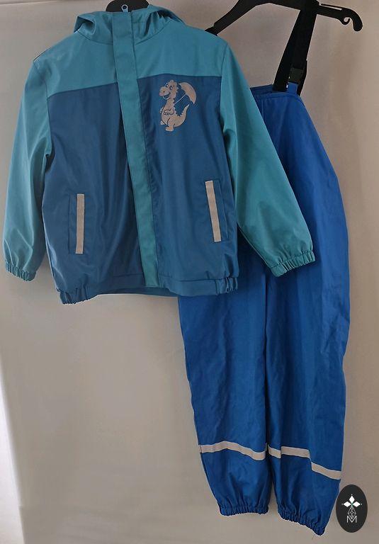 P.O.P. 3-piece jumpsuit for winter transition/spring season. Size more from 98-104 cm. More towards size 98. It will also fit a small 104 or if the child is somewhere between 98-104. The set includes: