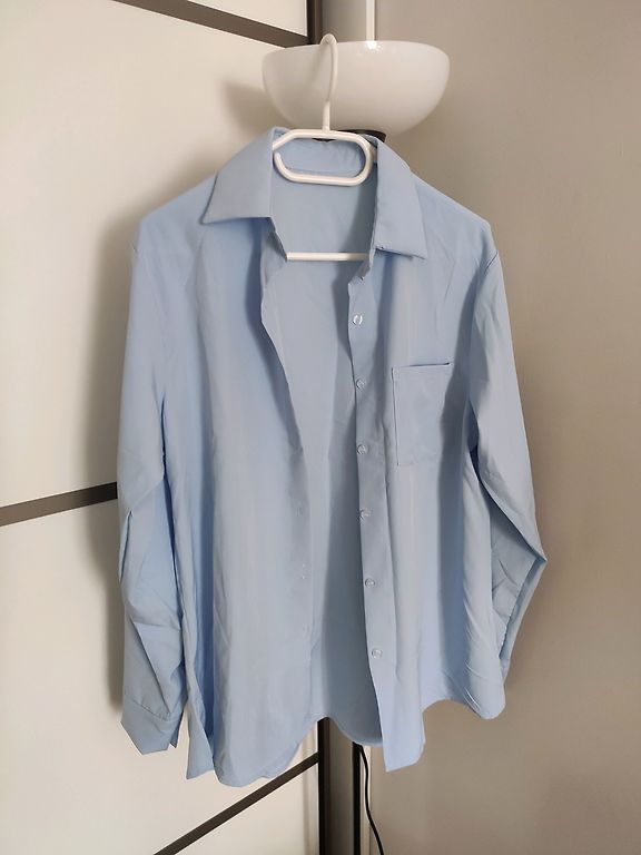 Uus pluus, kuid ilma sildita ja pestud, sest ostsin siit. Kahjuks on see minu jaoks liiga suur, sobib hästi suuremate rindade omanikule XXXL suuruses. Väga ilusad varrukad, komplimenteeriv dekoltee, kangal on hea langus, külgedel lõhikud, seljaosa veidi pikem, kortsumatu materjal.