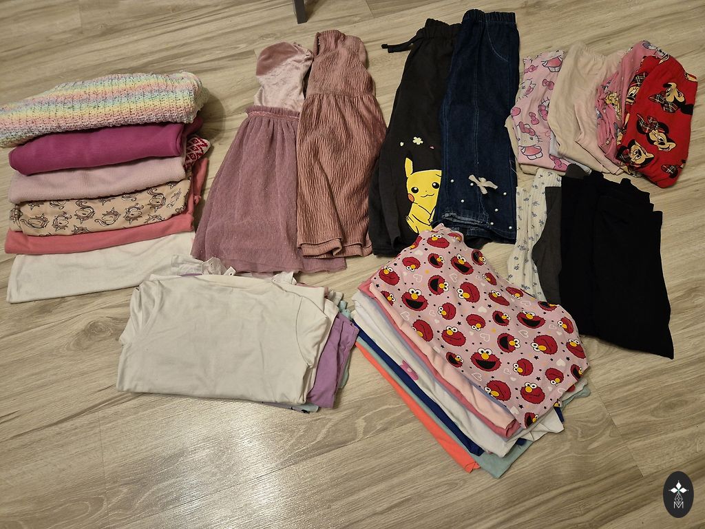 Piedāvāju meitenei drēbju mix 134/140. Komplektā ietilpst džemperi,bikses(sportveidīgas),īsroku krekliņi,jakas, šorti u.c. Kādai redzami savēlumi,bet tā bez traipiem, normāls stāvoklis. Ir gan no h&m,Lindex,Reserved,tāds baigais firmu kokteilis drēbēs.