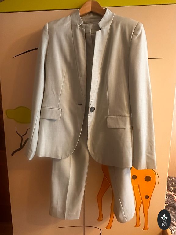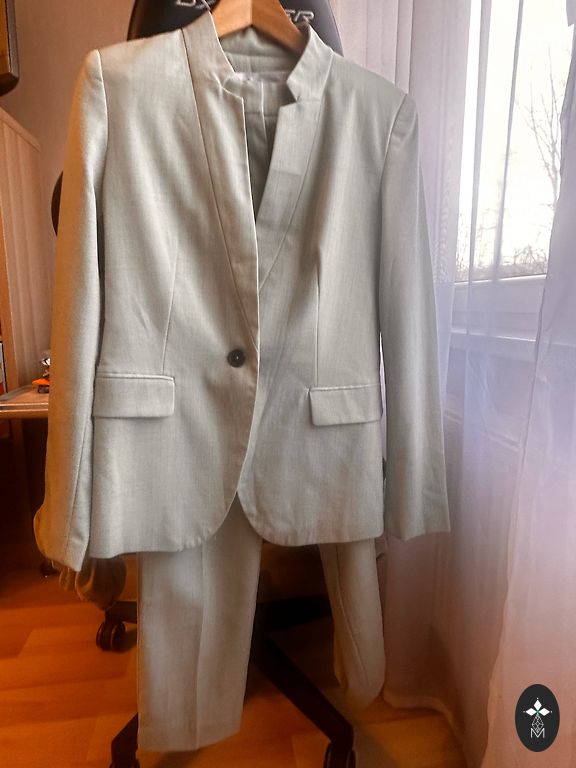 Suurepärases seisukorras. Jakki pikkus 70 cm, varruka pikkus 61 cm. Pükste pikkus 109 cm, vöökoht 40 cm.