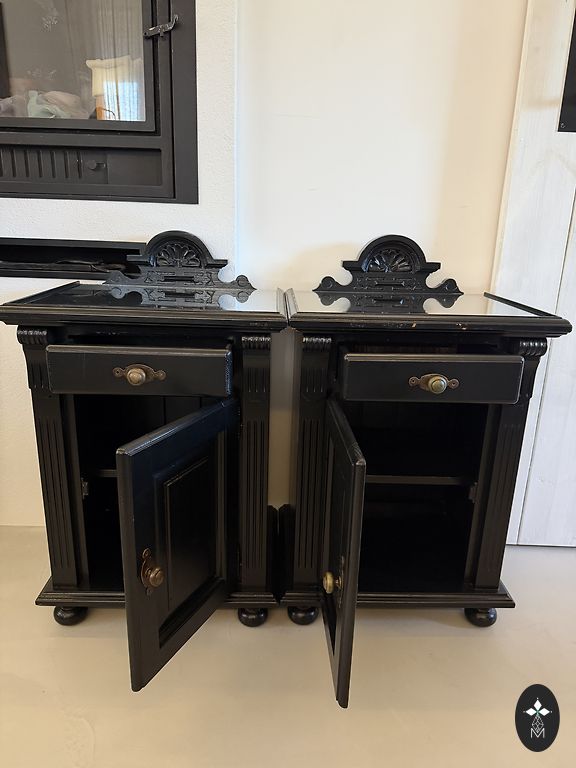 Antīks +/- 20.gadi,servējamais galdiņš ar noņemamu paplāti( rokturi no misiņa), noapaļotām stikla durtiņām.Stikli bez bojājumiem. Pēdējā bildē redams neliels bojājums noņemot paplāti,….kā teikt “ vecums dara savu “ :))) Augstums 77,platums no roktura līdz rokturim 67, dziļums 47cm.