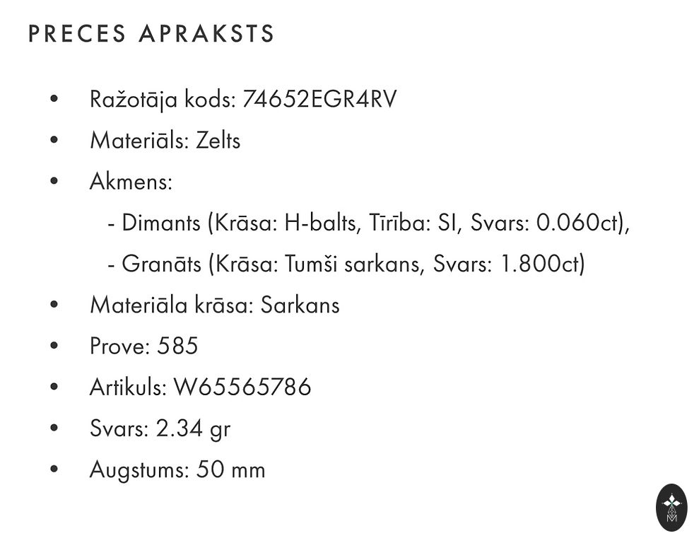 | Medžiaga | Auksas |