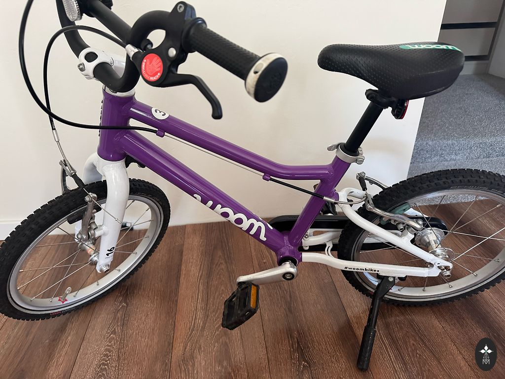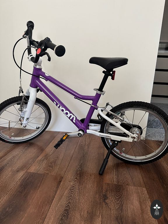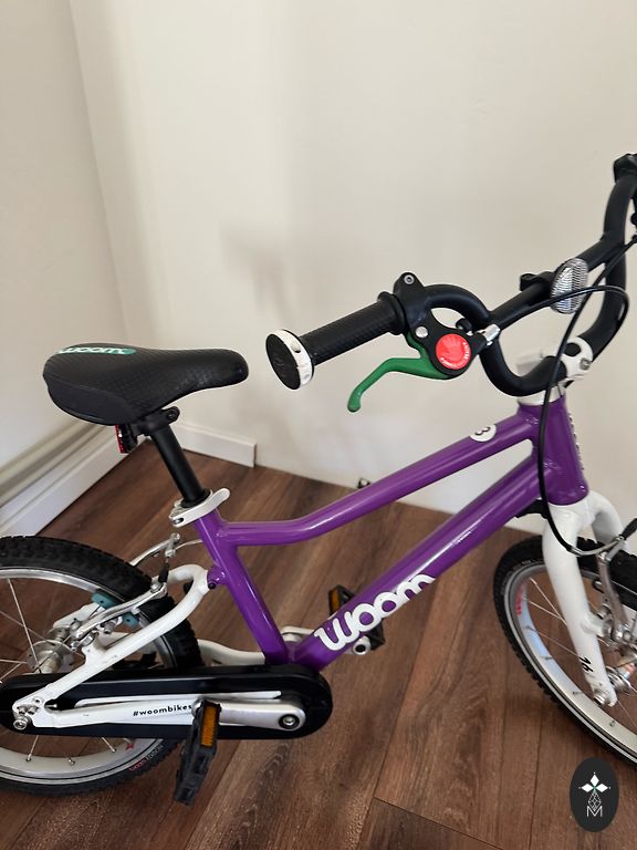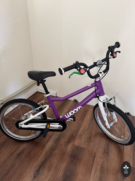 Lietots, woom2 velosipēds- ir lietošanas pazīmes, bet visādi citādi labā stāvoklī. Ir atbalsta kājiņa, dubļu sargi un zvaniņš, kas pamata komplektācijā nenāk līdz.
