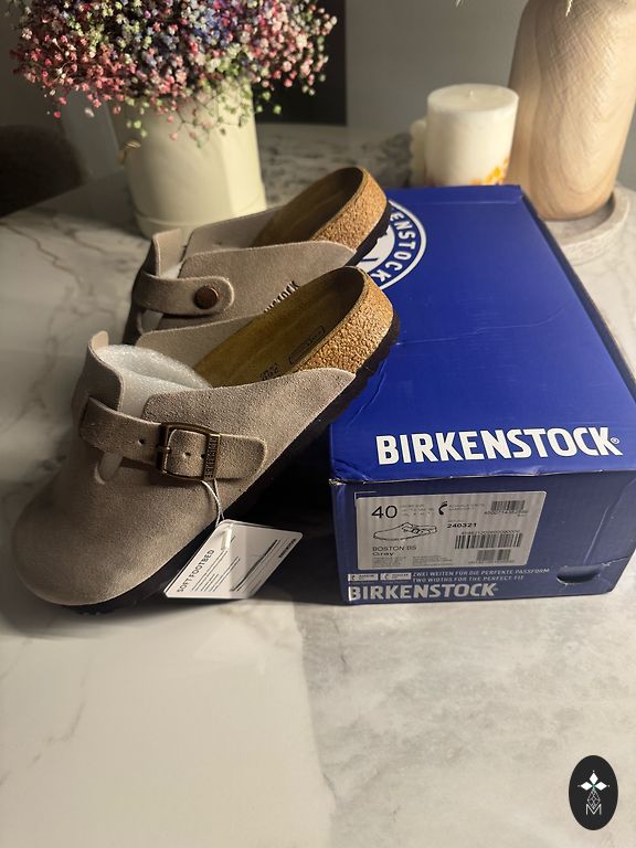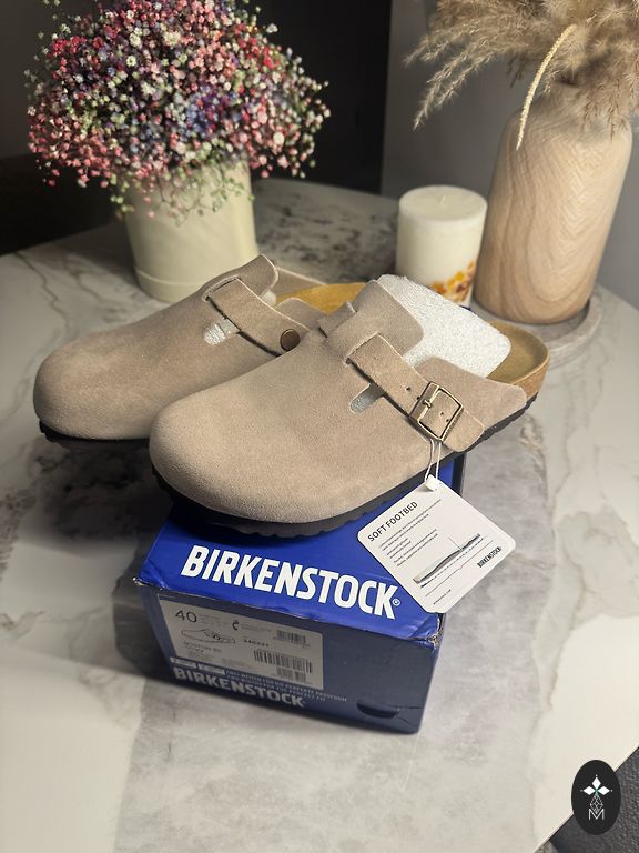 The season's most sought-after model! ✨ Selling iconic Birkenstock Boston "Taupe" suede clogs. They are completely sold out in stores and are every wardrobe's dream.