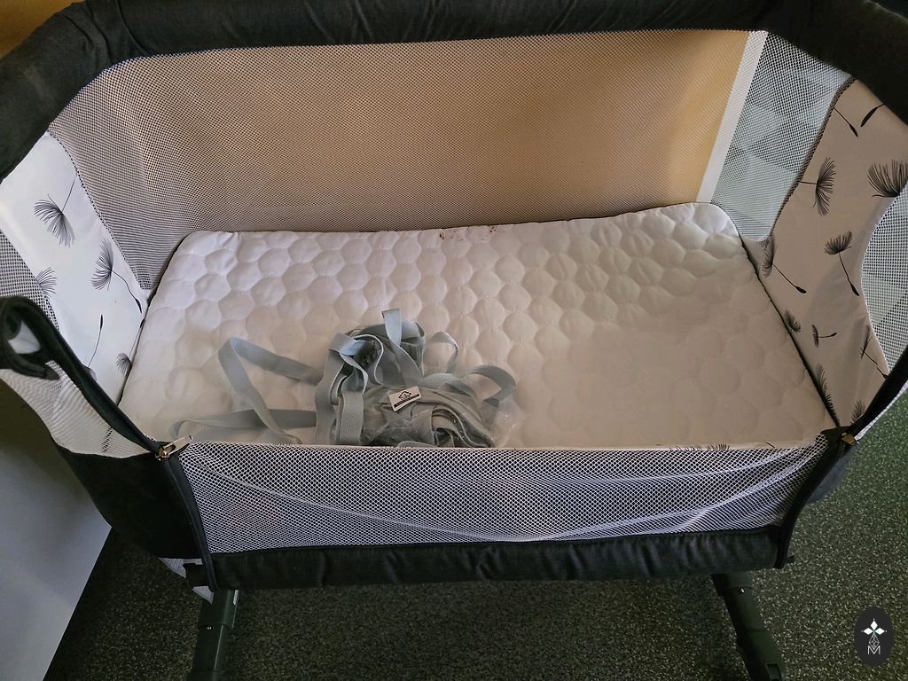 Купила новую, очень мало использовала, есть небольшие дефекты у самой сумки, в которую кладется кроватка, все остальное в хорошем состоянии, для лучшего понимания добавлю ссылку, где можно посмотреть более подробное описание!