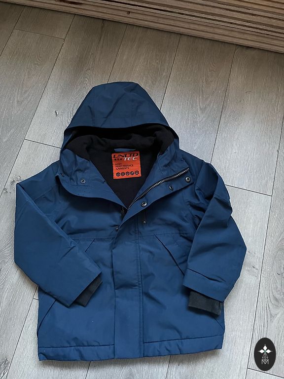 Laste vee- ja tuulekindel kevad-sügise jakk. Hingav pealisriie. Kapuutsi ääres on sisseõmmeldud kummipael. Eemaldatav kapuuts kinnitatakse krae külge trukkidega. Reguleeritavad varrukate otsad. Tõmbluku kinnitus. Ees taskud sisseõmmeldud tõmblukuga. Alumisel äärel kummipaela tunnel koos sisseõmmeldud stopperitega. Pealisriidel helkivad detailid.