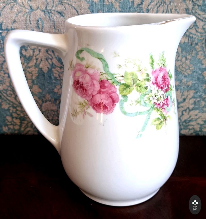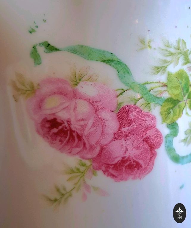 Dekorui naudojamas subtilus rankų tapymas. Pagrindinis gėlių motyvas yra po glazūra tapytas, o akcentai – dangaus mėlynos gėlės ir paauksavimas – uždėti virš glazūros.