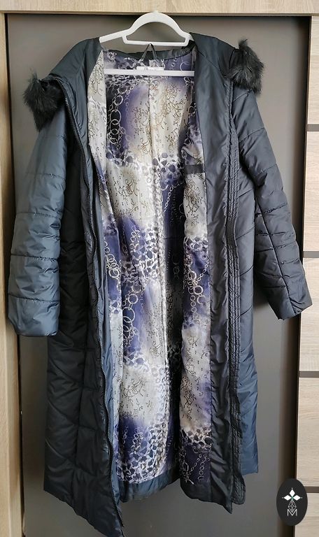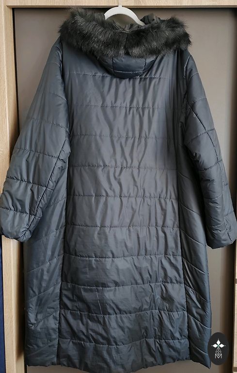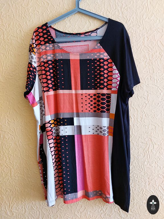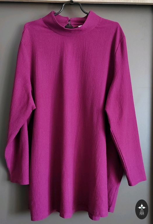 Tuunika pikkus 85 cm, ümbermõõt 140 cm, ¾ pikkusega varrukad, 53 cm. Ees õmblused koos sisseõmmeldud taskutega. Suurus 54/56.