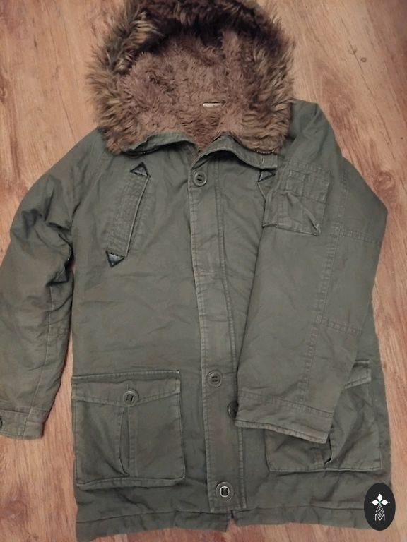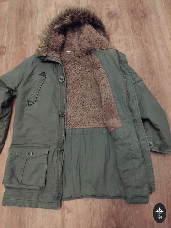 Длина 77 см, обхват груди 110 см, длина рукава 61 см, обхват бедер 108 см, обхват талии 98 см.