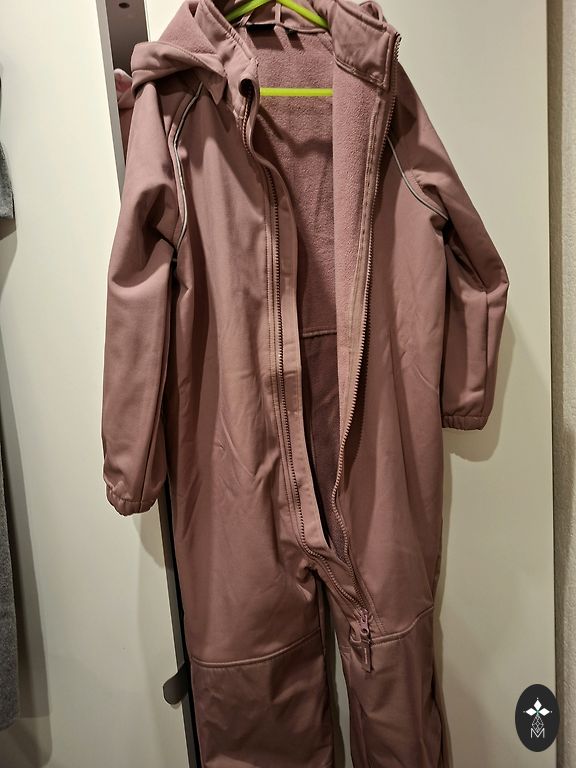 Vaikų sezono vidurio striukės ir kelnių komplektas. Atsparus vandeniui ir vėjui, kvėpuojantis viršutinis audinys. Striukės viduje yra minkštas pamušalas 40 g, kelnių nėra. Kelnės tiesios apačioje, be gumų.