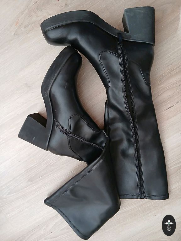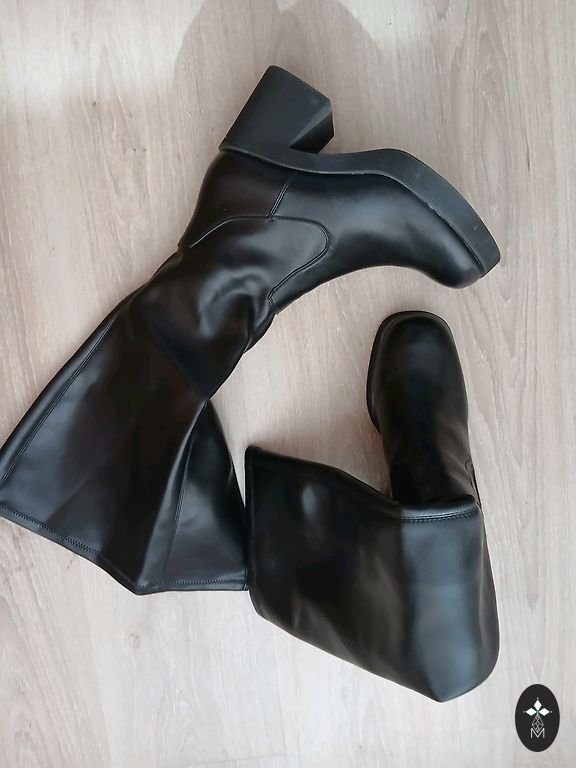 Mustad kõrge kontsaga saapad, pikad saapad.