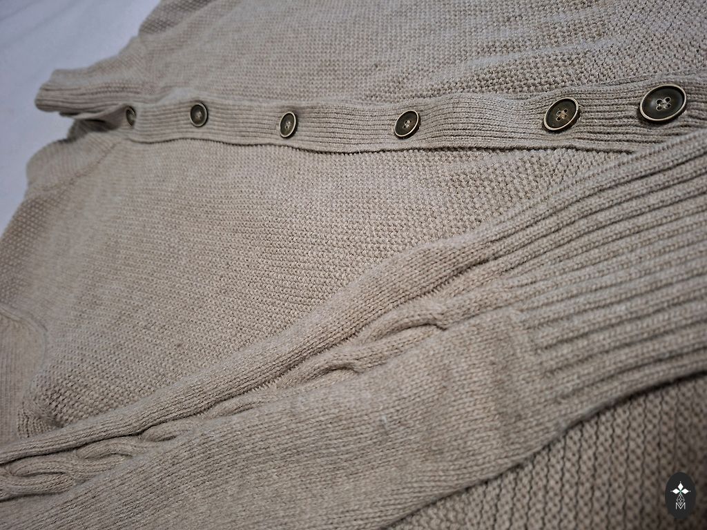 Yra pamušalas, be užsegimo, pusilgos rankovės.
