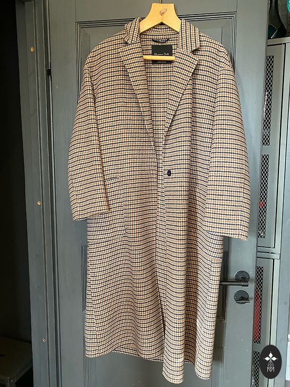 Punane pikk kapuutsiga mantel ja täisvooder. Itaalias toodetud kangas 100% kašmiirvillast. Suurus 42, pikkus: 125 cm.