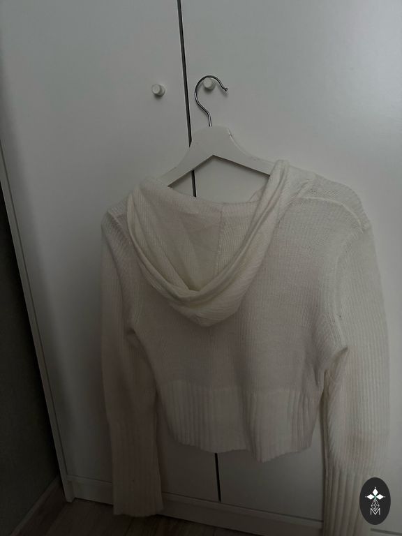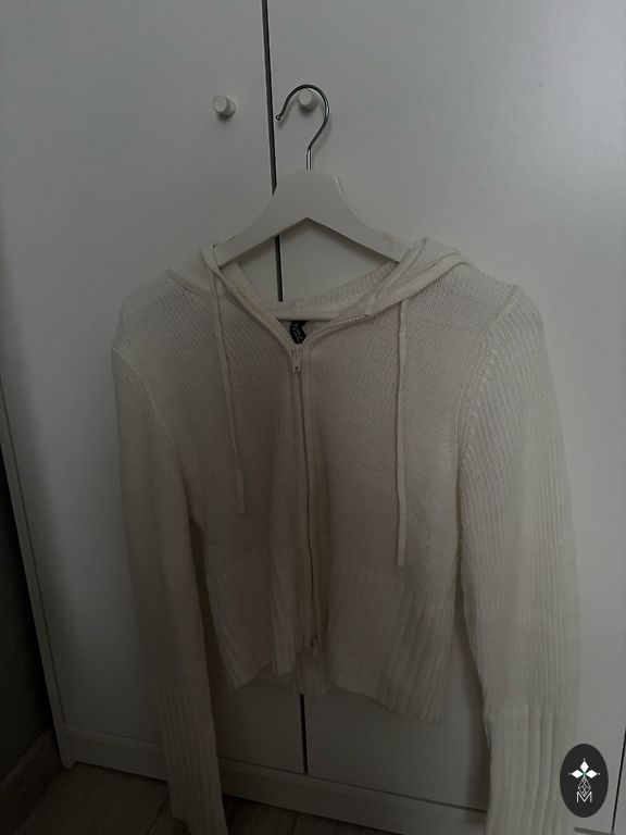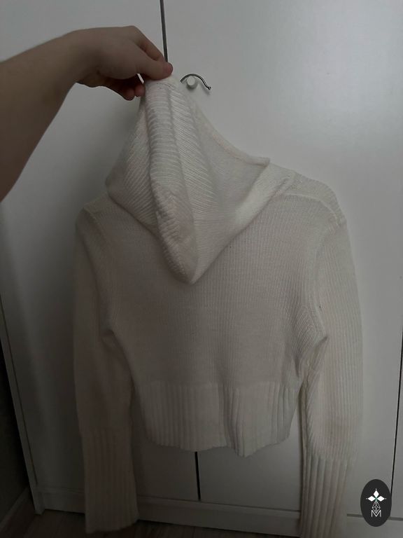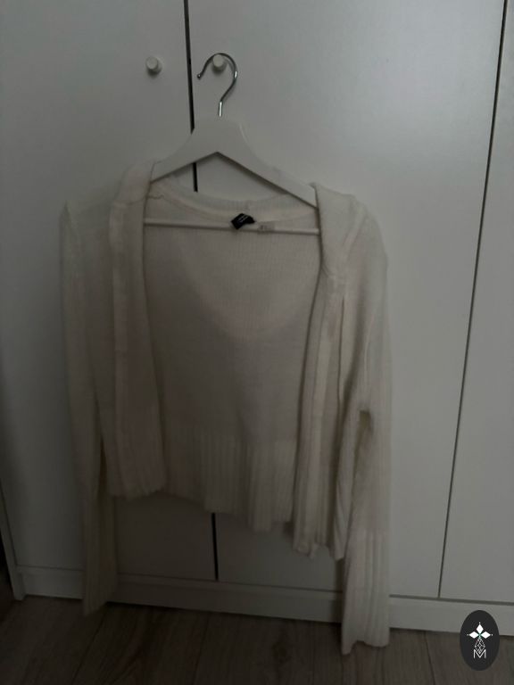 Minkštas ir malonus megztinis. Geros būklės ir dėvėtas kelis kartus. Visos mygtukai yra vietoje. Tinka pavasario šiltam orui arba vasaros vėsesniam vakarui. Megztinis yra maždaug iki sėdynės.