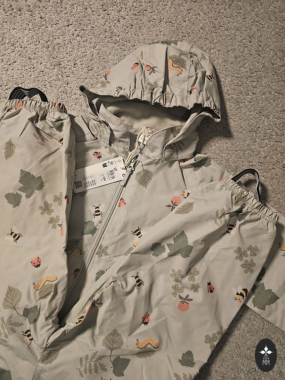 NEW Didriksons rain set insulated (fleece lining). Boardman. Size 100. Ideal for all seasons. Boardman is a durable rainwear set for children, perfect for outdoor activities. The set is fully waterproof with taped seams, made from a special Galon fabric, making it ideal for wearing in the rain. The warming microfleece lining keeps the child warm even on cold days.