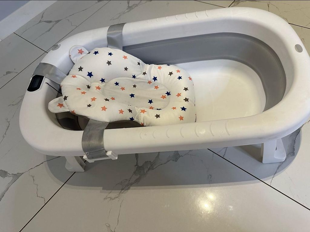 Adjustable in 3 tilt levels. Convenient to use in the shower or bath. From birth to approximately 3-4 months. Easily stored, takes up little space when folded, convenient to take along on trips. Folded size 57x34, height 12cm. Box 58x37x13cm, supposedly fits the L compartment in Omniva.