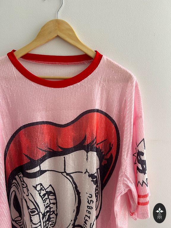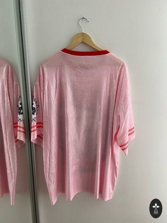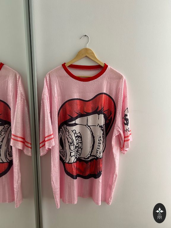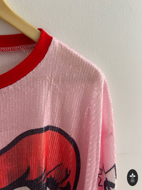Reserved kleita bez piedurknēm, rozā krāsā ar rakstu. Gluds, smags, patīkams materiāls. Derēs arī M/L kā oversized. Nav defektu.