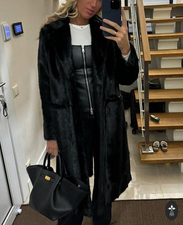 Švarkas su kontrastiniu stovinčiu apykakle ir ilgomis rankovėmis su skeltukais ir sagomis. Kišenės su atvartu tono. Užapvalinta apačia. Užsegimas sagomis priekyje.