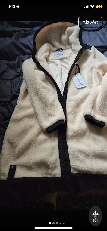 Moteriška striukė. Užsegama užtrauktuku ir sagomis. Trūkumas nedidelis, kurio ypatingai nematyti ir netrukdo. Parašyta XXL, bet realiai tinka L arba XL.