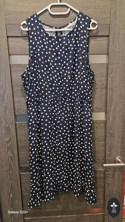 Isetehtud viskoos-linane kleit, ei kortsu. Kerge, hingav ja väga mugav. Kantud paar korda. Pikkus 97 cm, kimono stiilis varruka pikkus kraest 43 cm. Vöökoht venib kuni 110 cm.