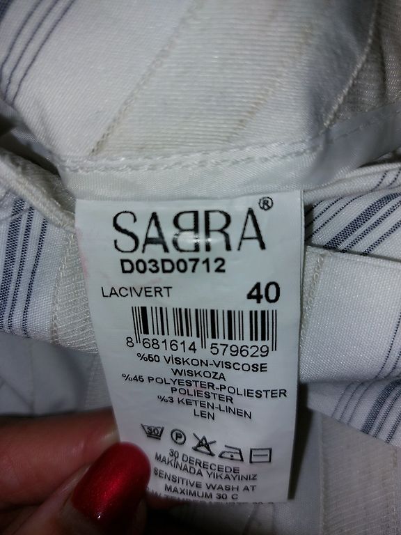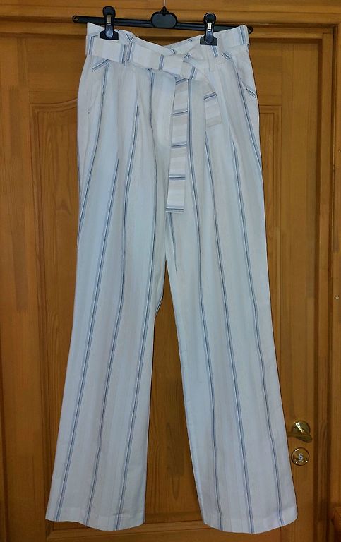 Vabalt langevad, rasked püksid, materjal ei kortsu. Püksid kõrge vöökohaga. Pikkus 115 cm, puusaümbermõõt 53 cm, vööümbermõõt 38 cm.