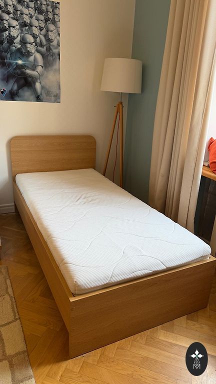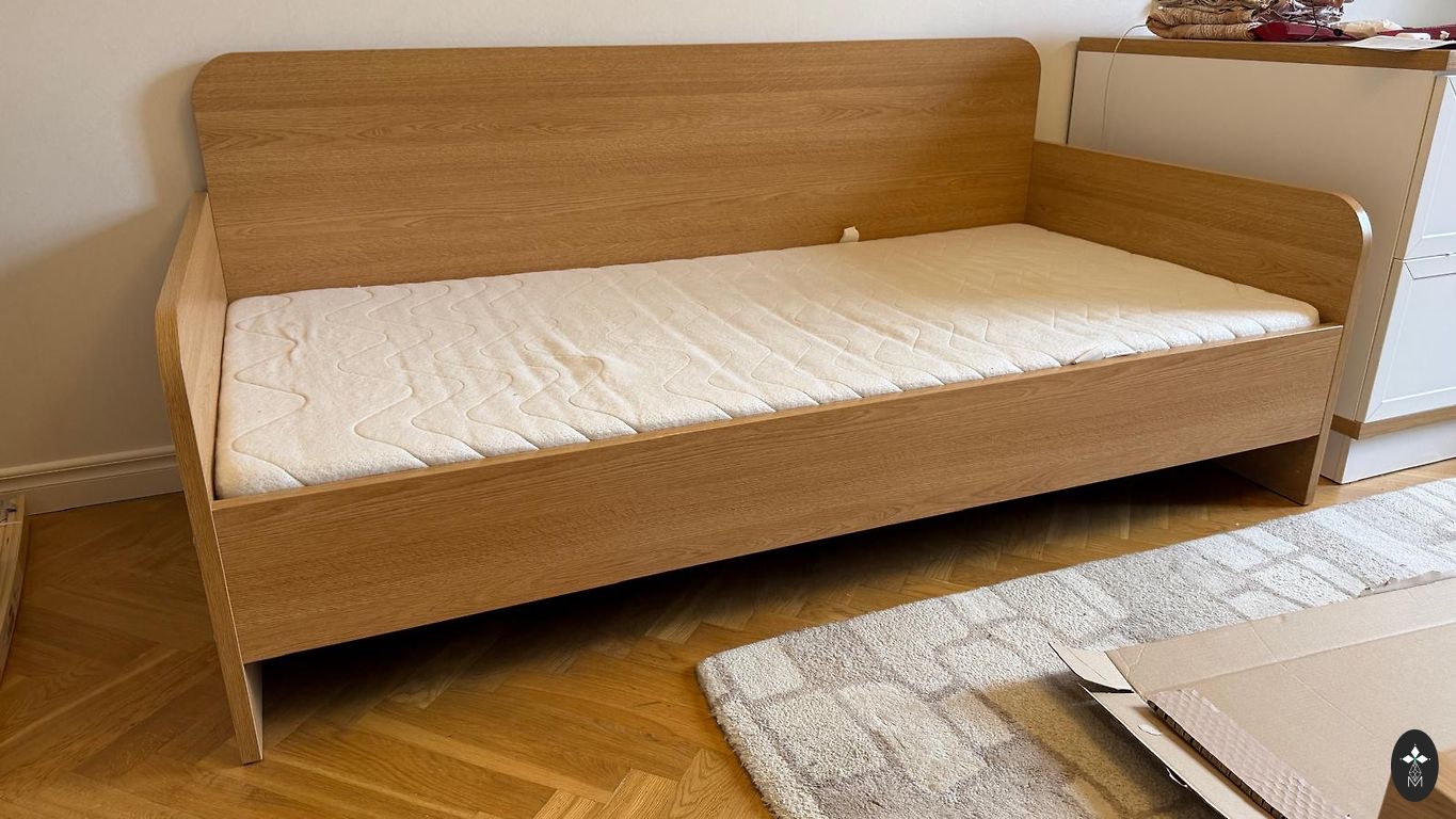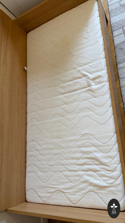 Kaheinimese voodi, asub Kokneses, väga heas seisukorras, on 2 madratsit, 2 suurt pesukasti.