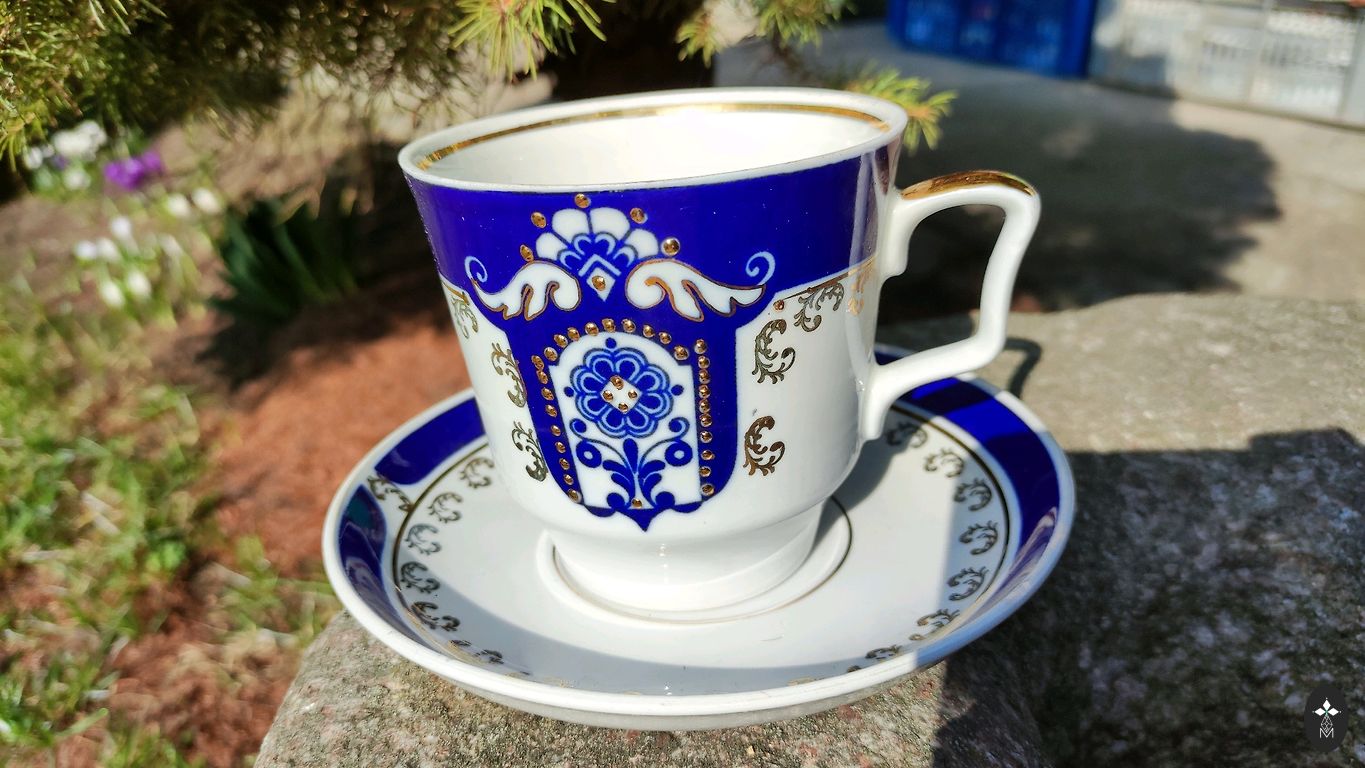 Šī divpadsmitā (no 39) porcelāna kafijas tase ar apakštasīti un šķīvi iemūžinājusi Zviedrijas karaļa Kārļa XVI Gustava un Silvijas Sommerlatas līgavas pušķi kāzās, kuras notika piektdien, 1976. gada 19. jūnijā, Storkyrkanā.