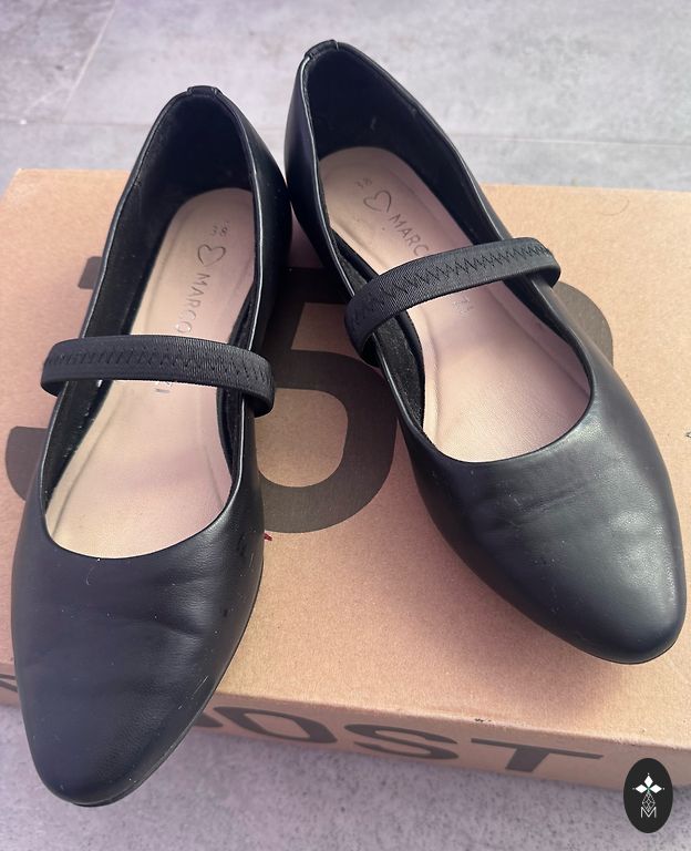 Красивые, элегантные и качественные кожаные туфли. На подошве размер 7, что соответствует 37/38. Внутренняя стелька примерно (из-за заостренного носка) 24 см. Немного использованы, без повреждений/царапин.