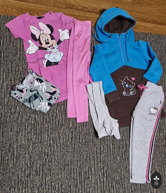 3 leggings size 104 (2 next, 1 hm), 1 puma sweatshirt, 1 zara, 1 hm