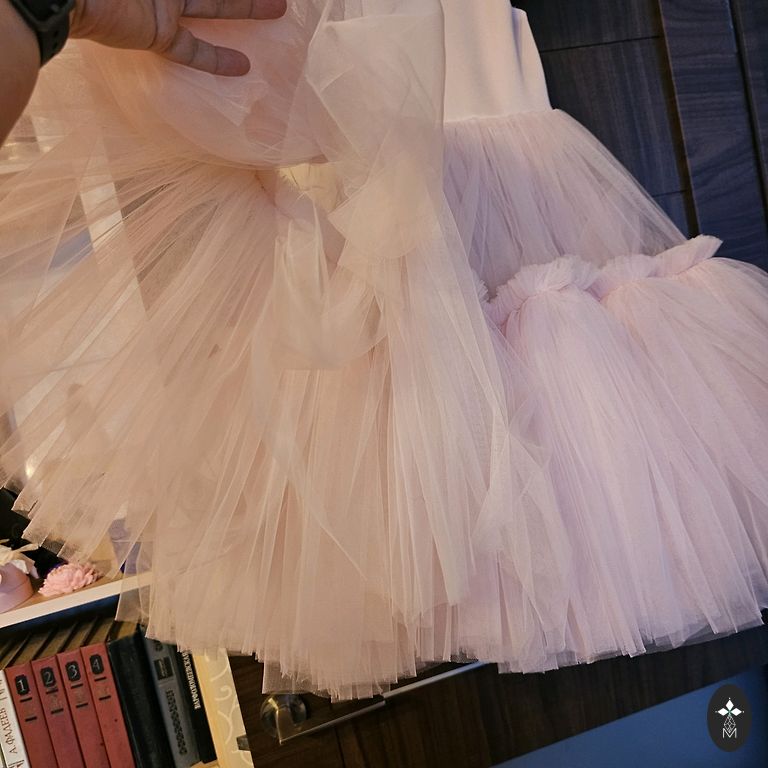 Gražus pūstas sijono kritimas su tiulio apačia
