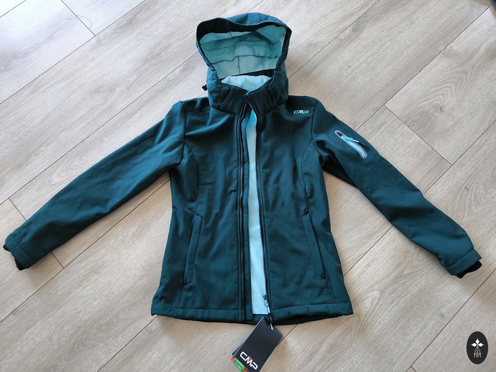 Новая полудлинная софтшелл куртка. Капюшон и часть карманов с сердечками.