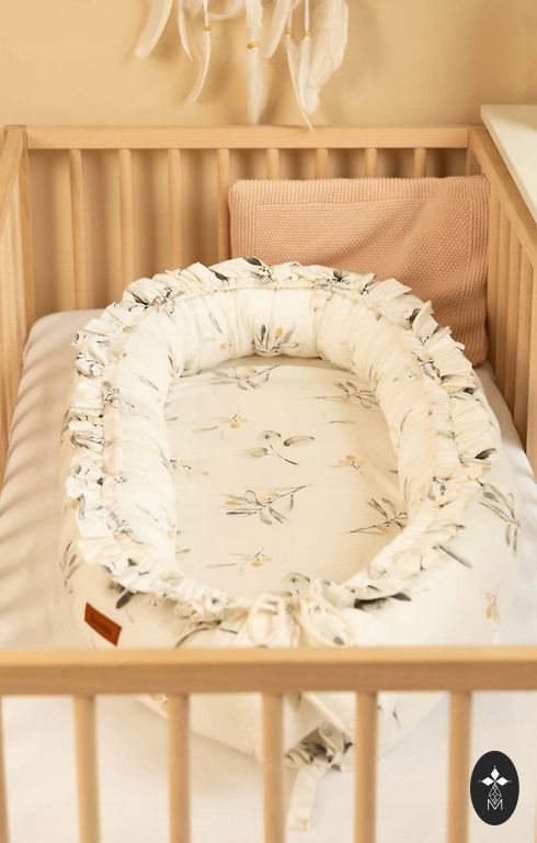 Cam Cam Copenhagen nest 100% cotton, breathable material. The size of the nest can be adjusted with strings, so it adapts to the child's growth. Ideally suited for use in a crib, on a sofa, or during travels.