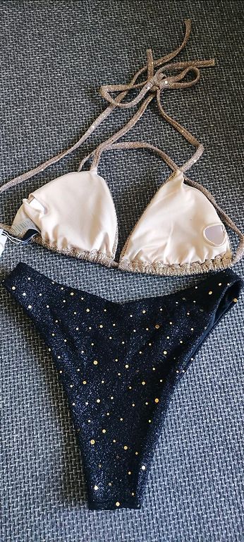 Originaalse disainiga SPA ujumistrikoo avatud seljaosaga ja kuldse vööga. Materjal on tugeva elastsusega Suurus-L