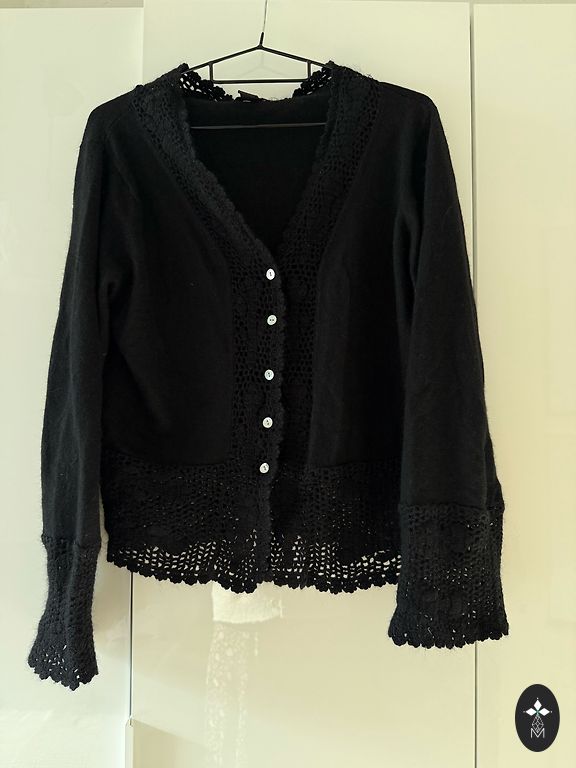 Vieną kartą dėvėta. Didesnio dydžio švarkas, ilgos rankovės, spalva kreminė balta. 60% medvilnės, 40% akrilo.