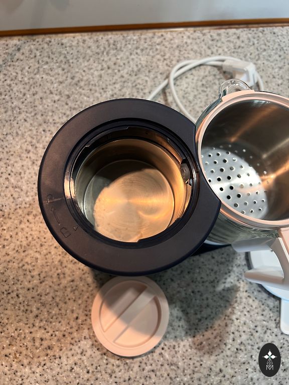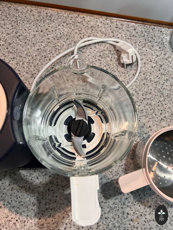 Techninis veikimas idealus, nėra įtrūkimų ar kitų vizualių defektų. Šviesios plastikinės dalys nusidažė nuo daržovių. Komplekte taip pat yra laikymo indas ir mentelė.
